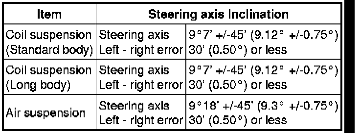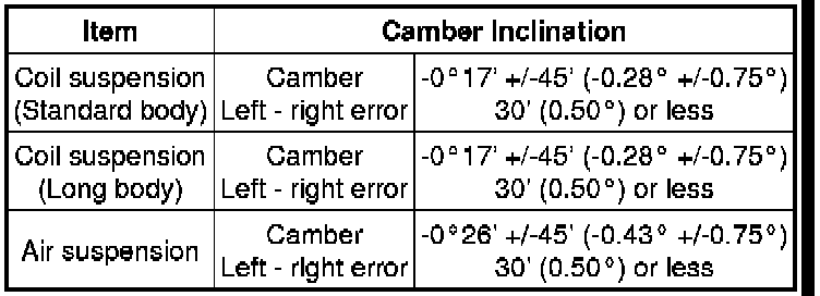 * The maximum tolerance of right and left difference for the camber is 30' or less.