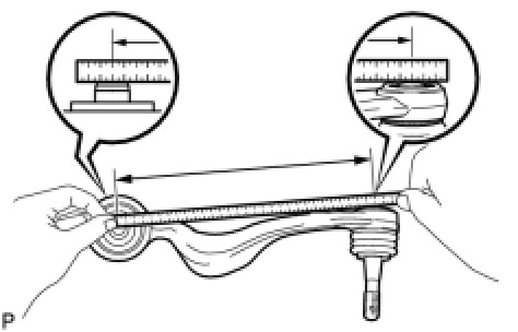 (2) Measure the dimension between the center of the front No. 1 suspension lower arm bush and the ball joint stud.