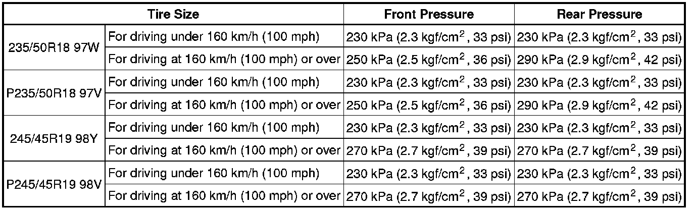 Cold tire inflation pressure: