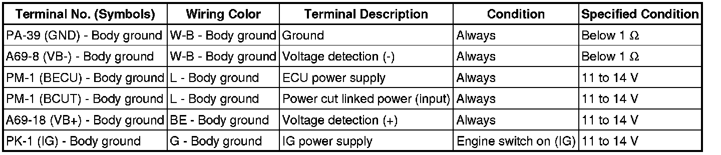 (a) Disconnect the PA, PM, PK and A69 ECU connectors.