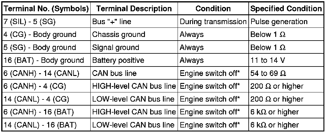 *: Before measuring the resistance, leave the vehicle as is for at least 1 minute and do not operate the engine switch, any other switches, or the doors.