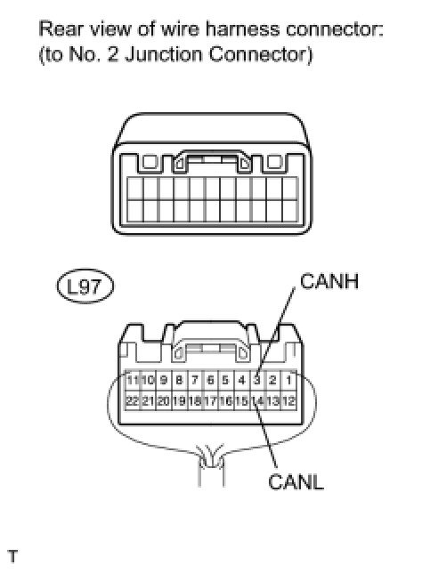 (a) Disconnect the L97 No. 2 junction connector connector.