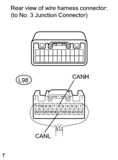 (a) Disconnect the L98 No. 3 junction connector connector.