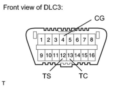 (1) Using SST, connect terminals 12 (TS) and 4 (CG), and 13 (TC) and 4 (CG) of the DLC3.