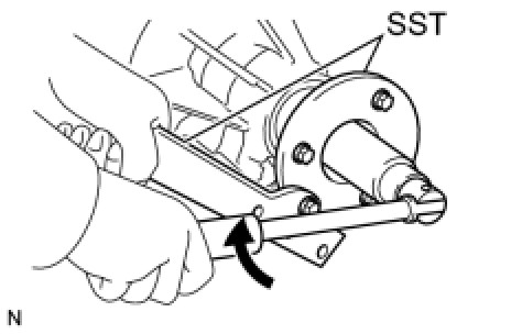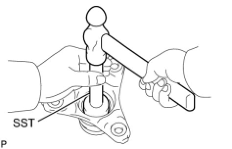 (b) Using SST and a hammer, tap in the oil seal until it fits with the transmission case.