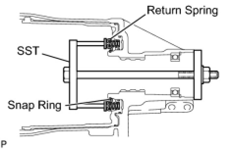 (f) Place SST on the clutch balancer and compress the return spring with a press.