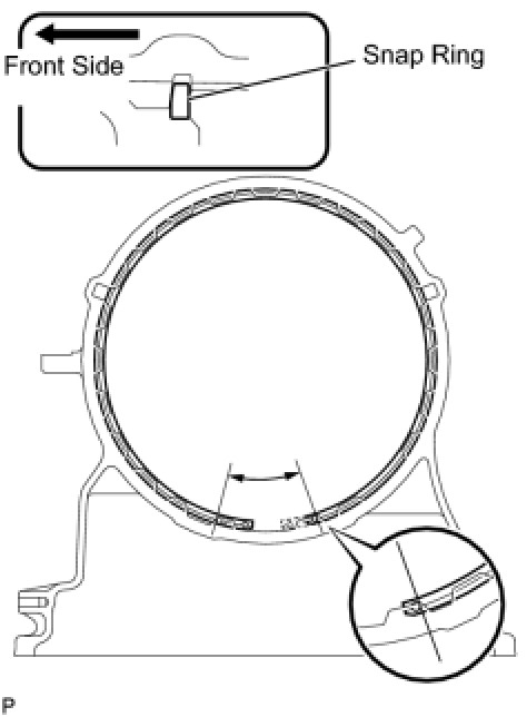 * Install the snap ring so that its gap end is within the range shown in the illustration.