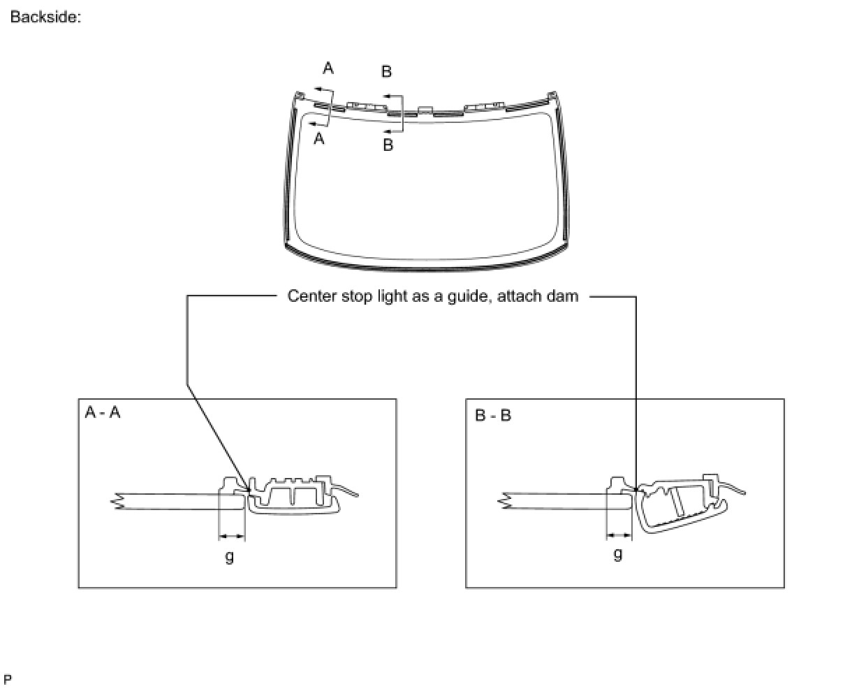 (b) Remove the peeling paper from the adhesive part of the dam. Install the dam (adhesive side) to the glass (Primer G area).