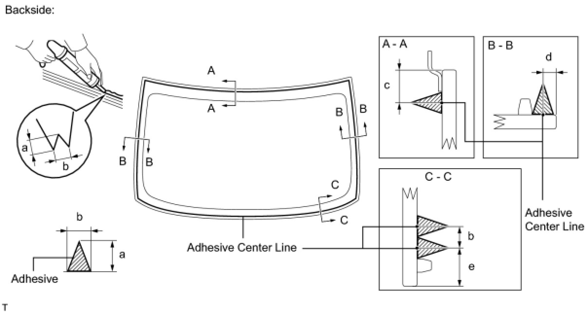 (1) Hold the back window glass securely in place with tape or equivalent until the adhesive has hardened.