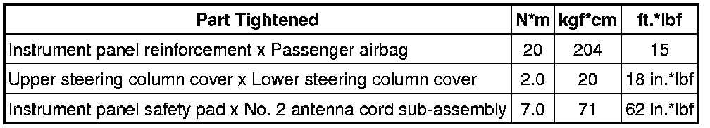 SERVICE SPECIFICATIONS: INSTRUMENT PANEL: TORQUE SPECIFICATIONS