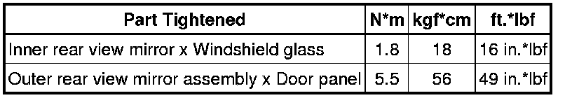 SERVICE SPECIFICATIONS: MIRROR: TORQUE SPECIFICATIONS