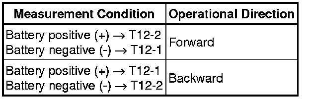 (1) Check if the seat frame moves smoothly when the battery is connected to the reclining motor connector terminals.