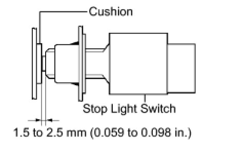 (b) Depress the pedal until a slight resistance is felt. Measure the distance as shown in the illustration.