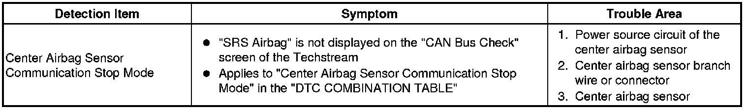 CAN COMMUNICATION: CAN COMMUNICATION SYSTEM: Center Airbag Sensor Communication Stop Mode