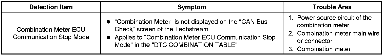 CAN COMMUNICATION: CAN COMMUNICATION SYSTEM: Combination Meter ECU Communication Stop Mode