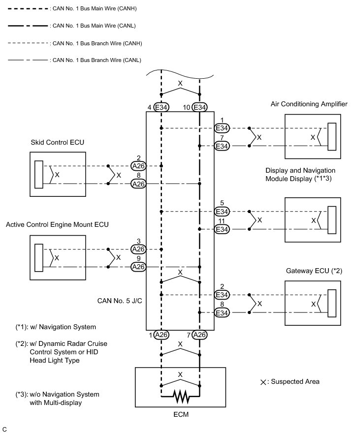 (b) Disconnect CAN No. 5 J/C connector E34.