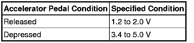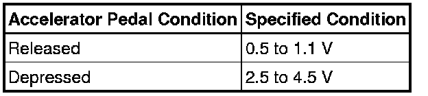 If the result is not as specified, check the accelerator pedal rod, wire harness or ECM.