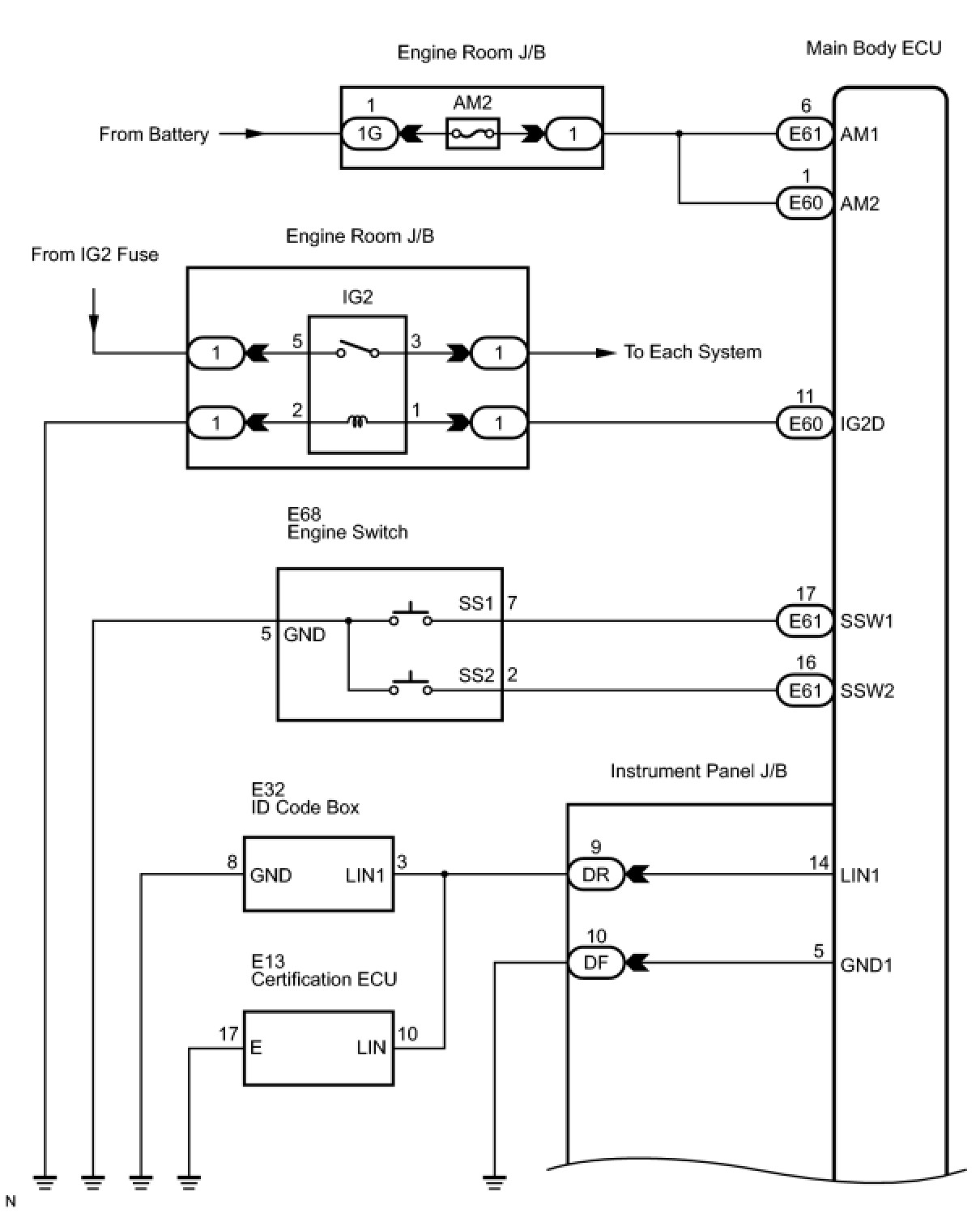 9. CHECK WIRE HARNESS (MAIN BODY ECU AND BODY GROUND - ENGINE SWITCH)