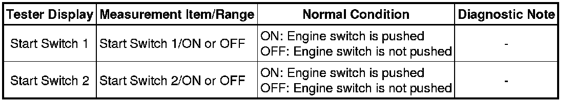(c) Check the DATA LIST for proper functioning of the start switches 1 and 2.