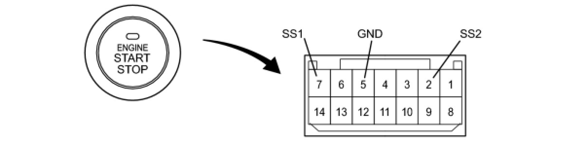 If the engine switch does not illuminate, perform troubleshooting according to the PROBLEM SYMPTOMS TABLE of the smart access system with push-button start (starting) (engine switch indicator light does not come on) Problem Symptoms Table and the smart access system with push-button start (Door lock) (matching for inside of the cabin cannot be performed) Smart Access System With Push-Button Start.