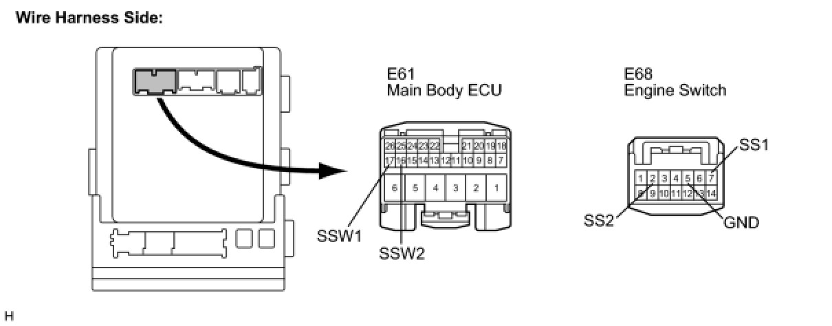 To allow use of Techstream to inspect the push-button start function when the engine switch is off, repeat opening and closing any of the doors. Opening and closing a door establishes communication between Techstream and the main body ECU. (Opening and closing a door can also be simulated by operating a door courtesy light switch.)