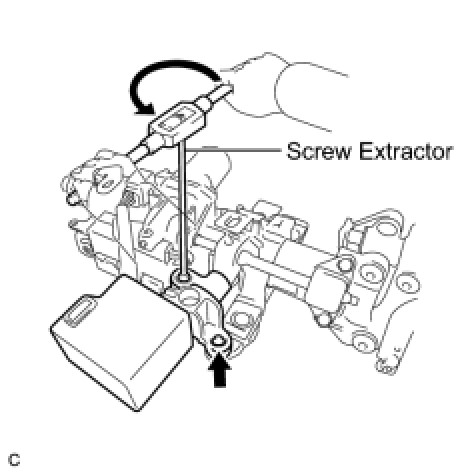 (c) Using a screw extractor, remove the 2 tapered-head bolts and steering lock actuator assembly from the steering column assembly.
