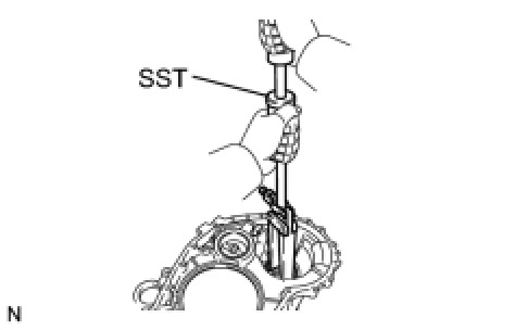 (a) Using SST and a hammer, remove the transaxle case oil seal from transaxle case.