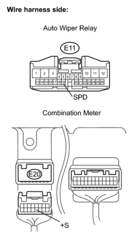 (a) Disconnect the E11 windshield wiper relay assembly (auto wiper relay) connector and E20 combination meter connector.