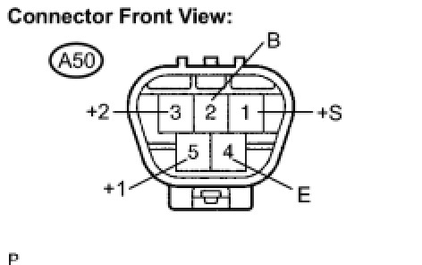 (1) Connect a positive (+) lead to terminal A50-3 (+2) of the connector, and a negative (-) battery lead to terminal A50-4 (E), and check that the motor operates at a high speed (HI).