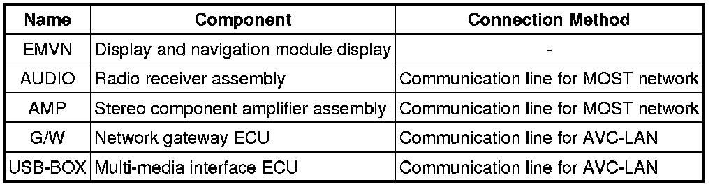 (1) Components of the navigation system communicate with each other via the AVC-LAN.