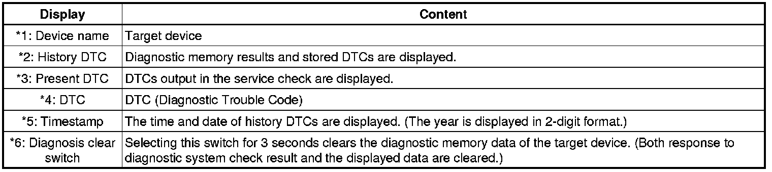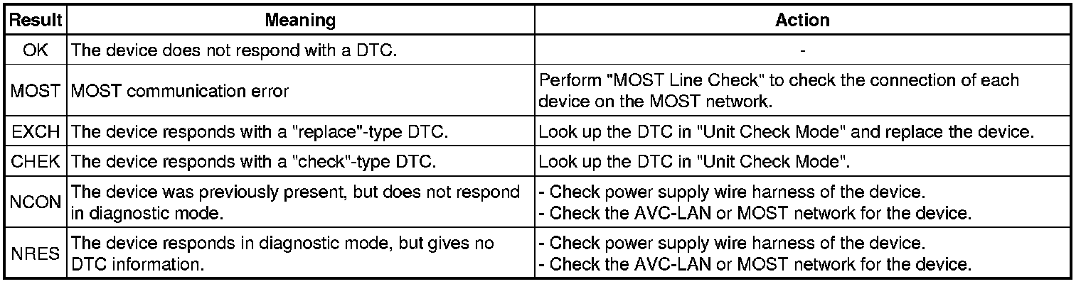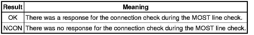 * The device name and result will not be displayed if there is no system registration record and no response for the connection check during the MOST line check even if the device is connected to the MOST network.