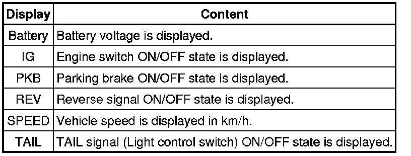 (4) Vehicle Signal Check Mode Screen