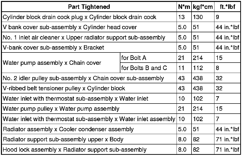 SERVICE SPECIFICATIONS: 4GR-FSE COOLING: TORQUE SPECIFICATIONS
