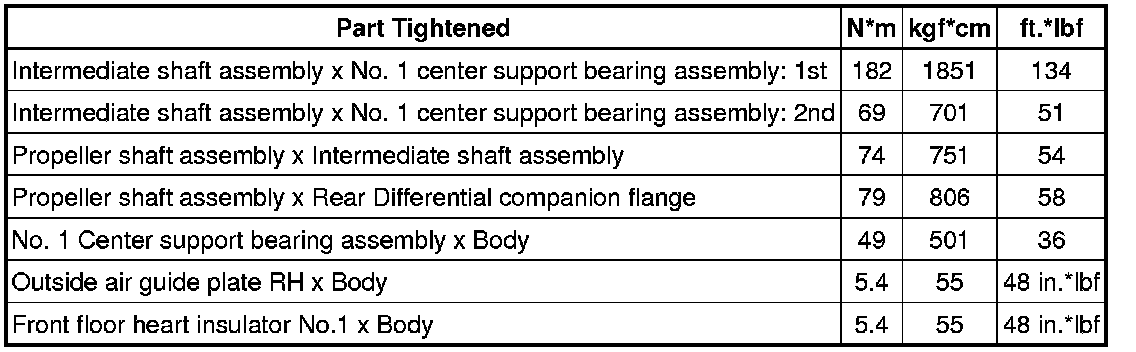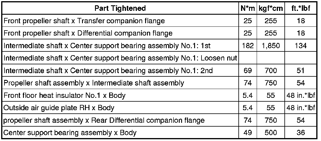SERVICE SPECIFICATIONS: PROPELLER SHAFT: TORQUE SPECIFICATIONS