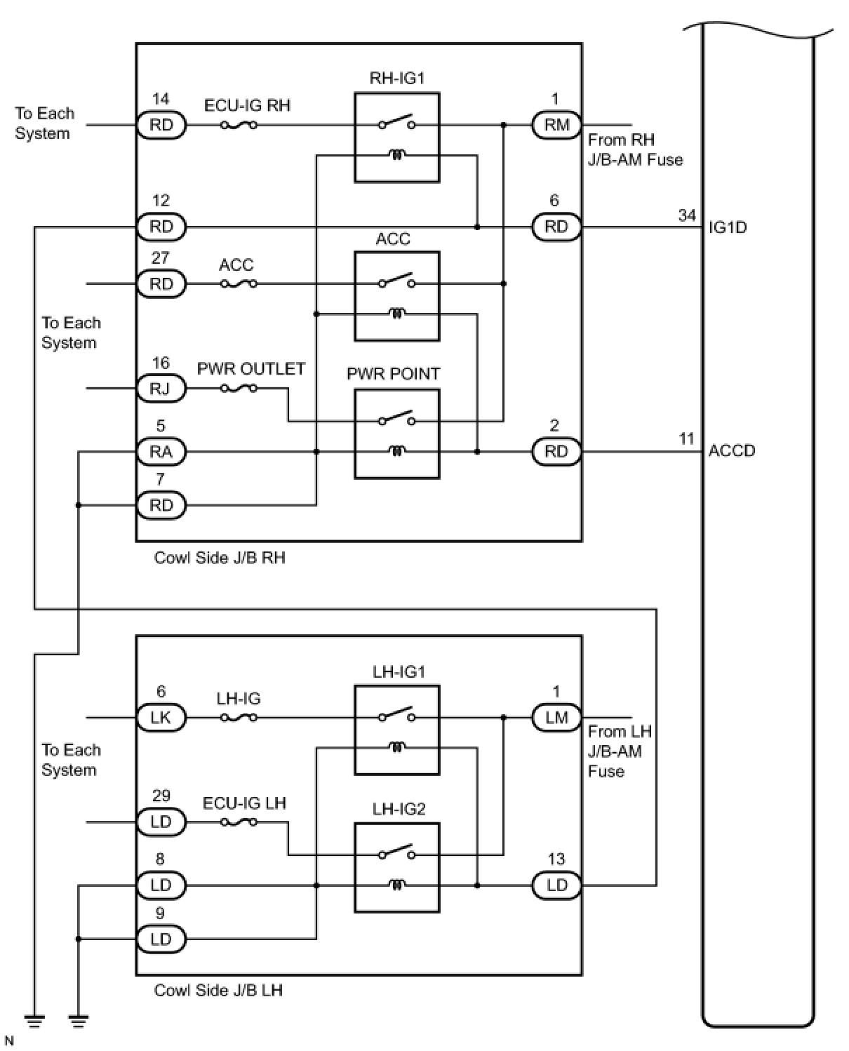 7. INSPECT JUNCTION BLOCK (RH-IG RELAY, LH-IG RELAY, ACC RELAY, PWR POINT RELAY)