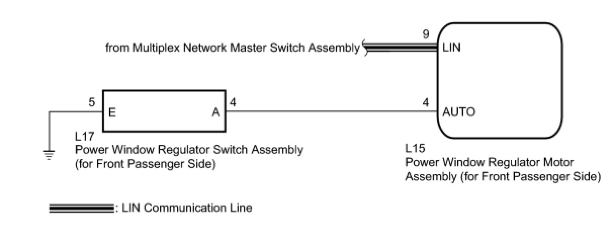 - Front Passenger Side Power Window Auto Up / Down Function does not Operate with Front Passenger Side Power Window Switch