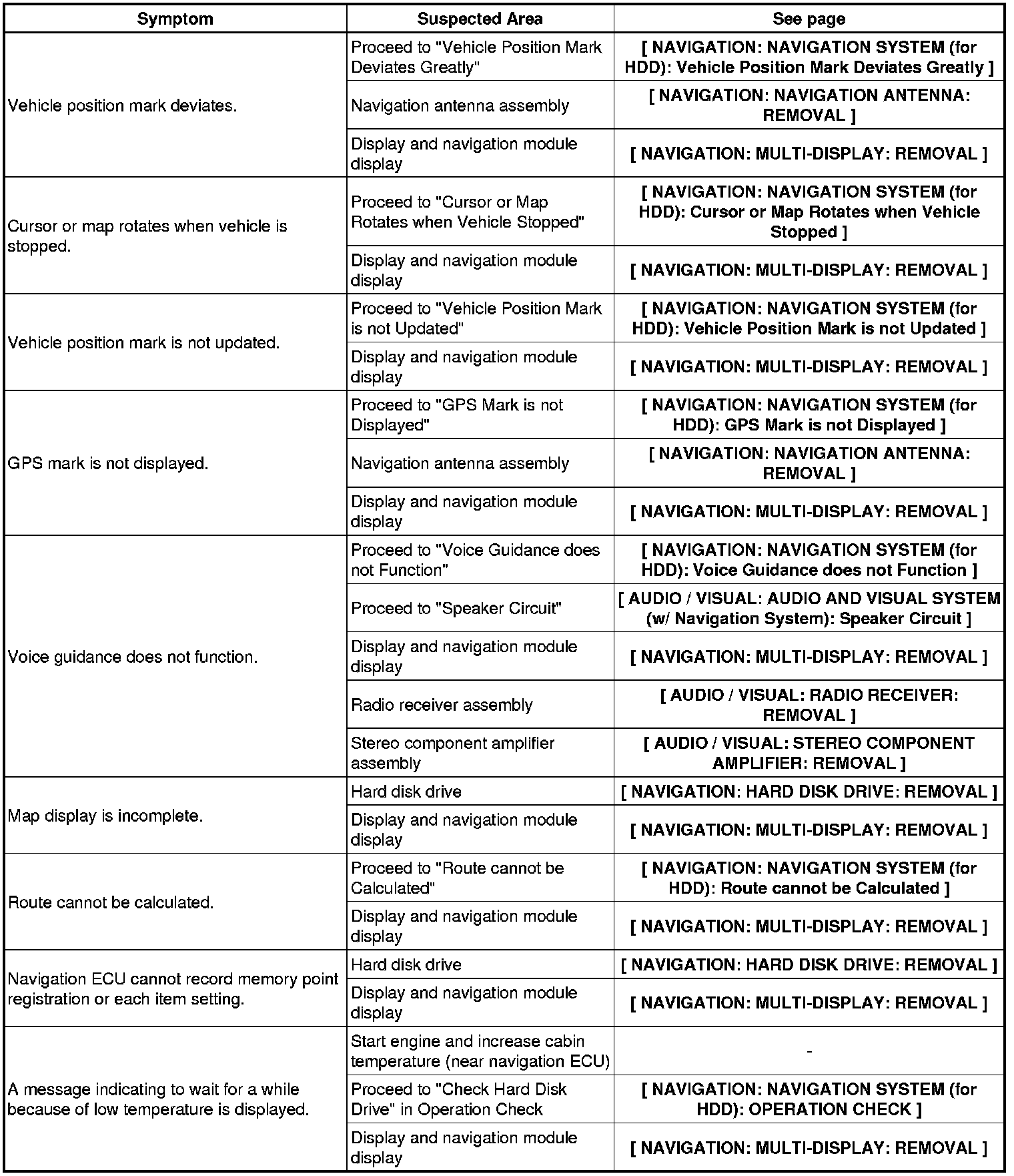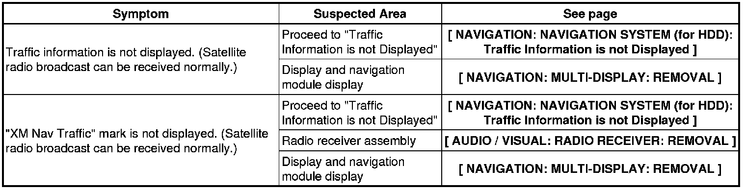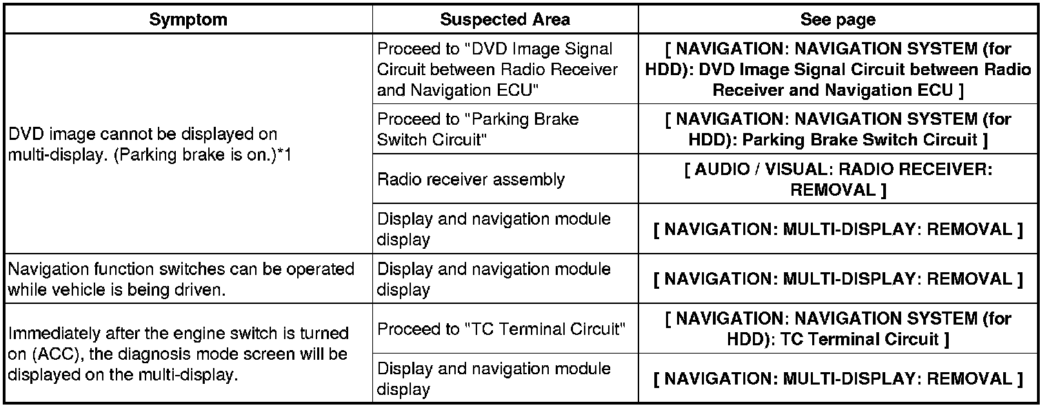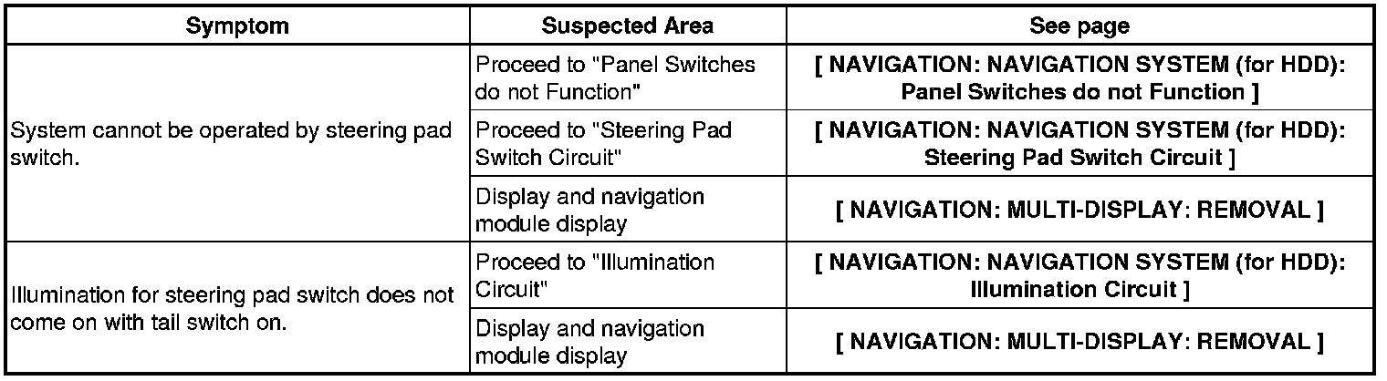 NAVIGATION: NAVIGATION SYSTEM (for HDD): PROBLEM SYMPTOMS TABLE
