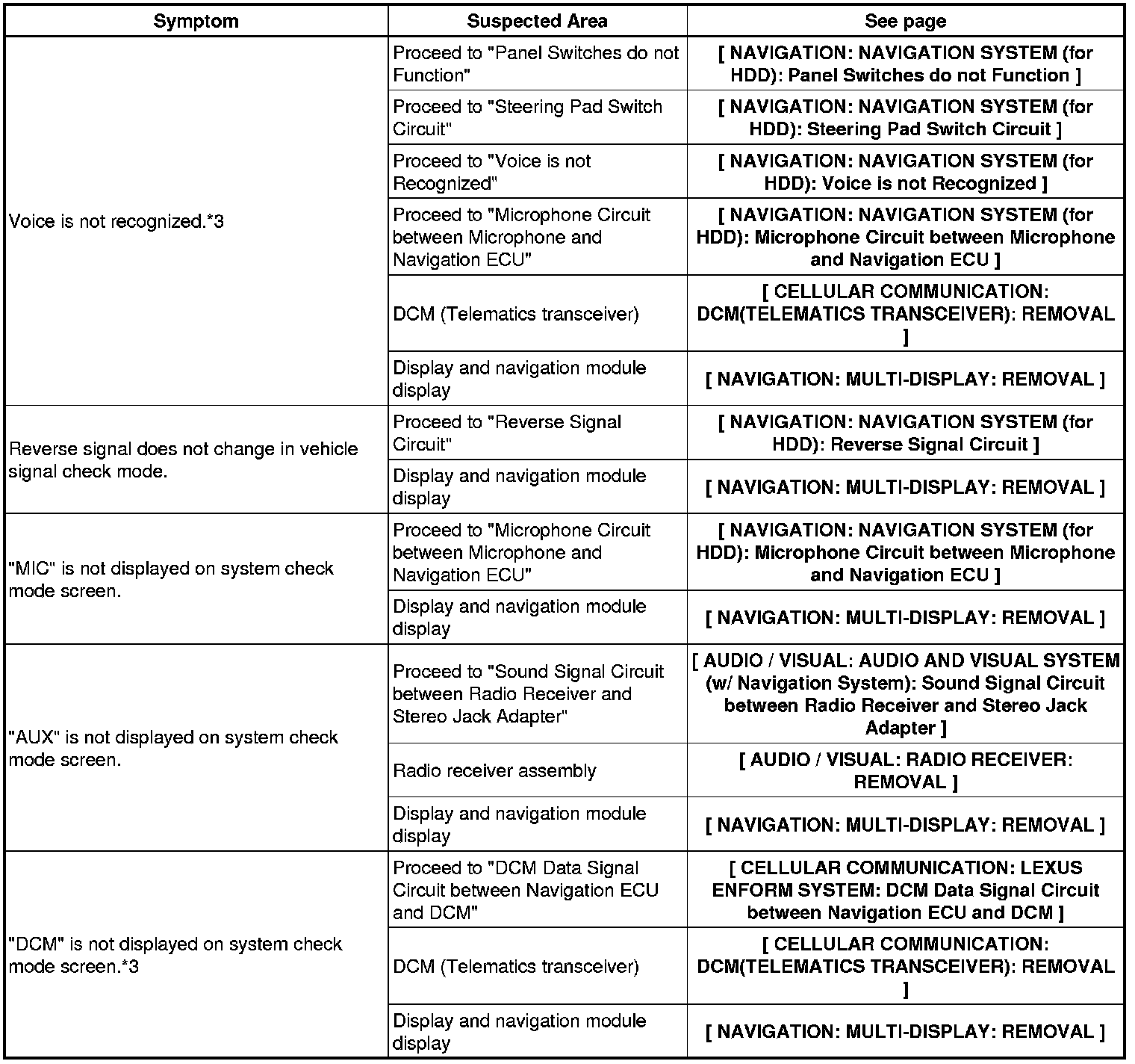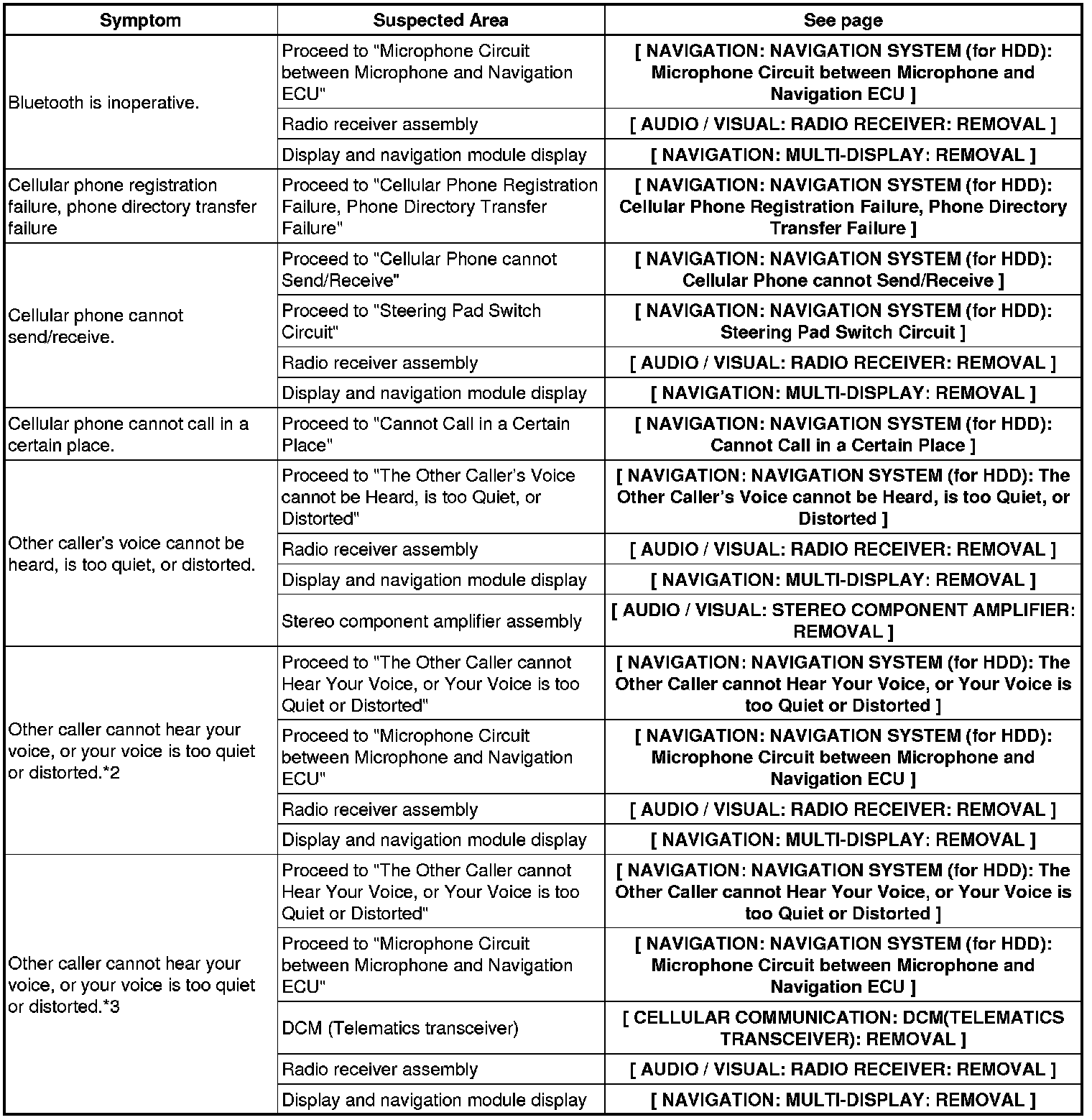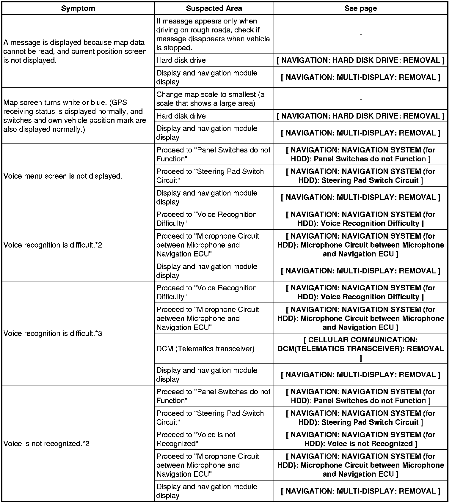 NAVIGATION: NAVIGATION SYSTEM (for HDD): PROBLEM SYMPTOMS TABLE