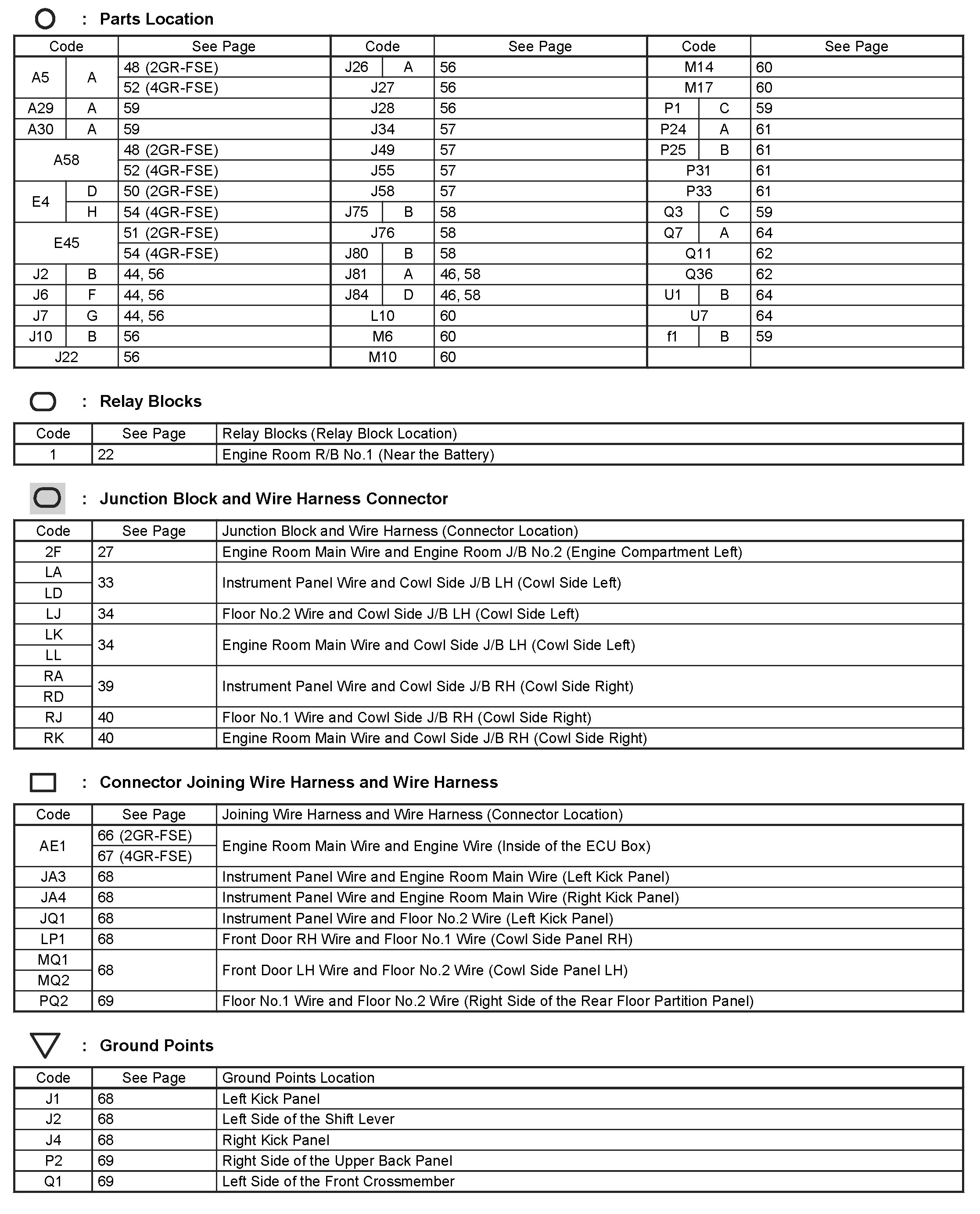 Locations: The locations of components, connectors, ground points, and splices referred to within these diagrams can be found at Vehicle Locations. Locations