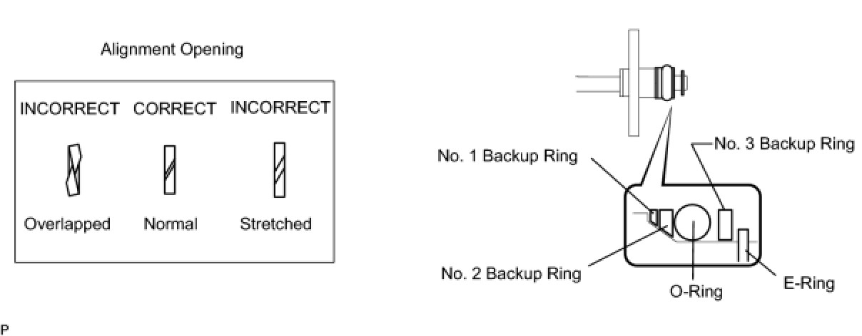 * Check that the alignment openings of the backup rings are not overlapped or stretched as shown in the illustration.