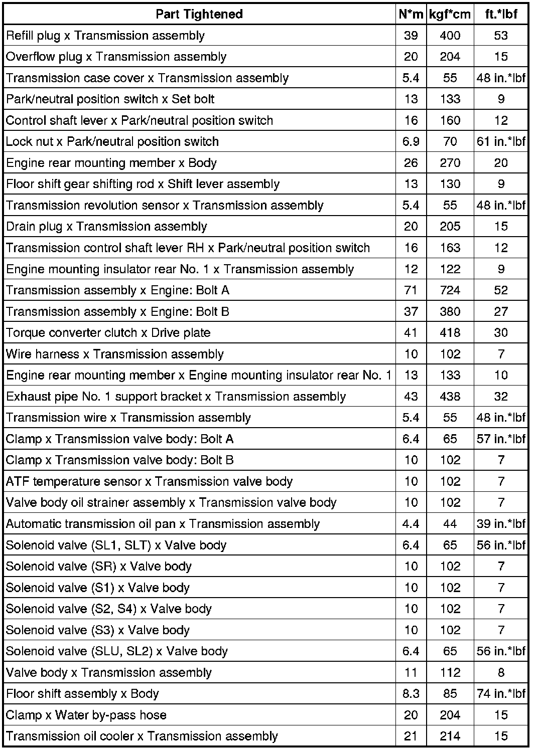 SERVICE SPECIFICATIONS: A960E AUTOMATIC TRANSMISSION: TORQUE SPECIFICATIONS