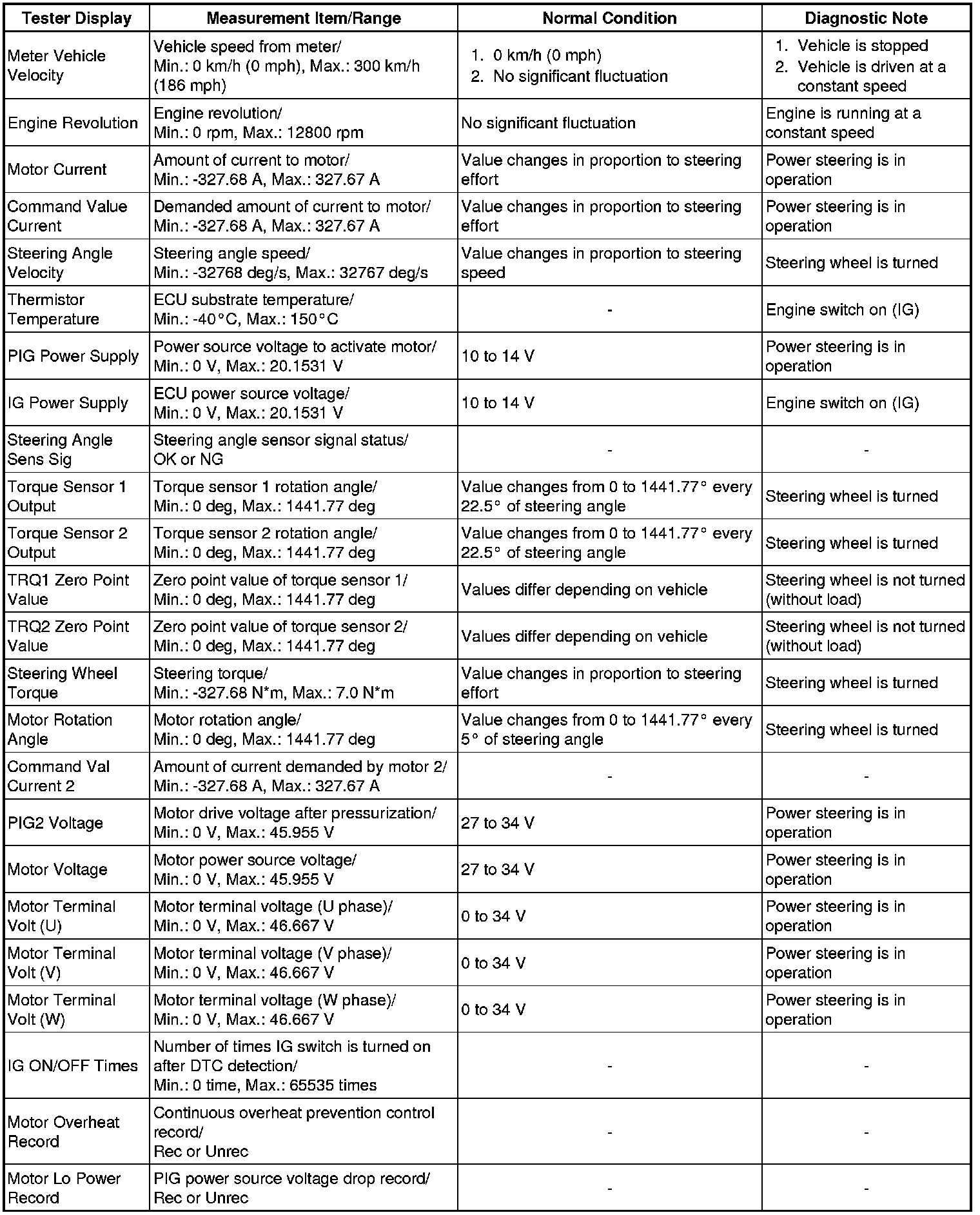 POWER STEERING: POWER STEERING SYSTEM: DATA LIST / ACTIVE TEST