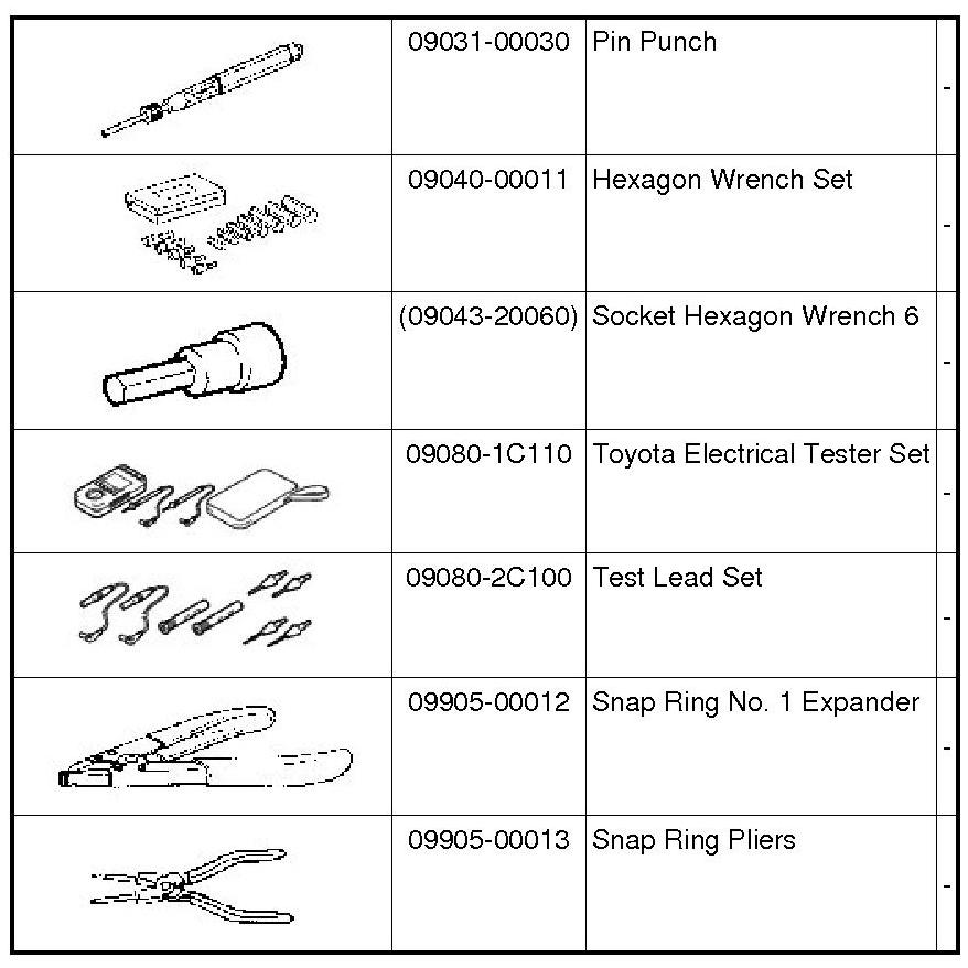 PREPARATION: A960E AUTOMATIC TRANSMISSION: RECOMMENDED TOOLS