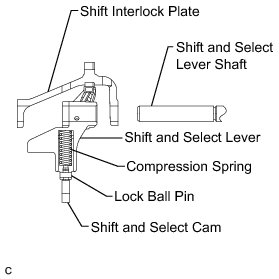 (a) Install the lock ball pin and compression spring into the shift and select lever.