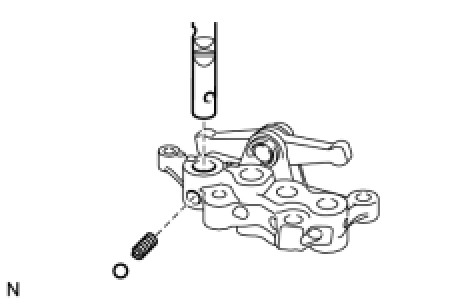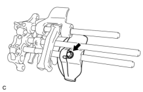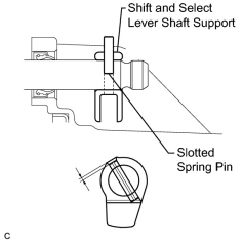 (a) Using a pin punch (dia5 mm) and a hammer, install the shift and select lever shaft support and a new slotted spring pin onto the shift and select lever shaft.