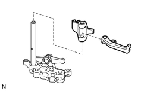 Align the convex portion of the oil receiver pipe with the cutout of the front case and install the oil receiver pipe onto the front transmission case.