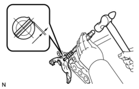 (f) Using a pin punch (dia5 mm) and a hammer, install a new slotted spring pin onto the shift and select lever.