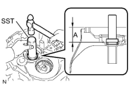 (a) Using SST and a hammer, tap a new transmission case oil seal into the front case in accordance with the dimension specified in the illustration.