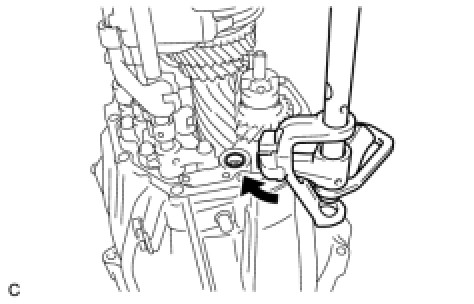 (g) Engage 5th gear, and then secure the input shaft using SST.