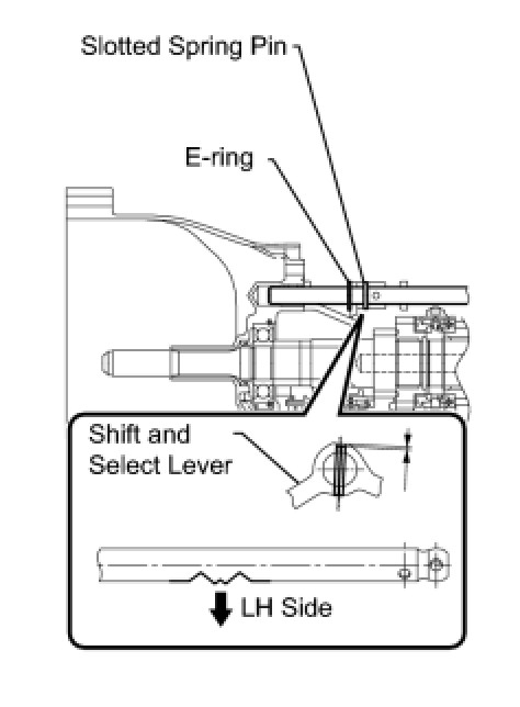 Ensure that the shaft is facing the correct direction when tapping the slotted spring pin into the shift and select lever shaft.